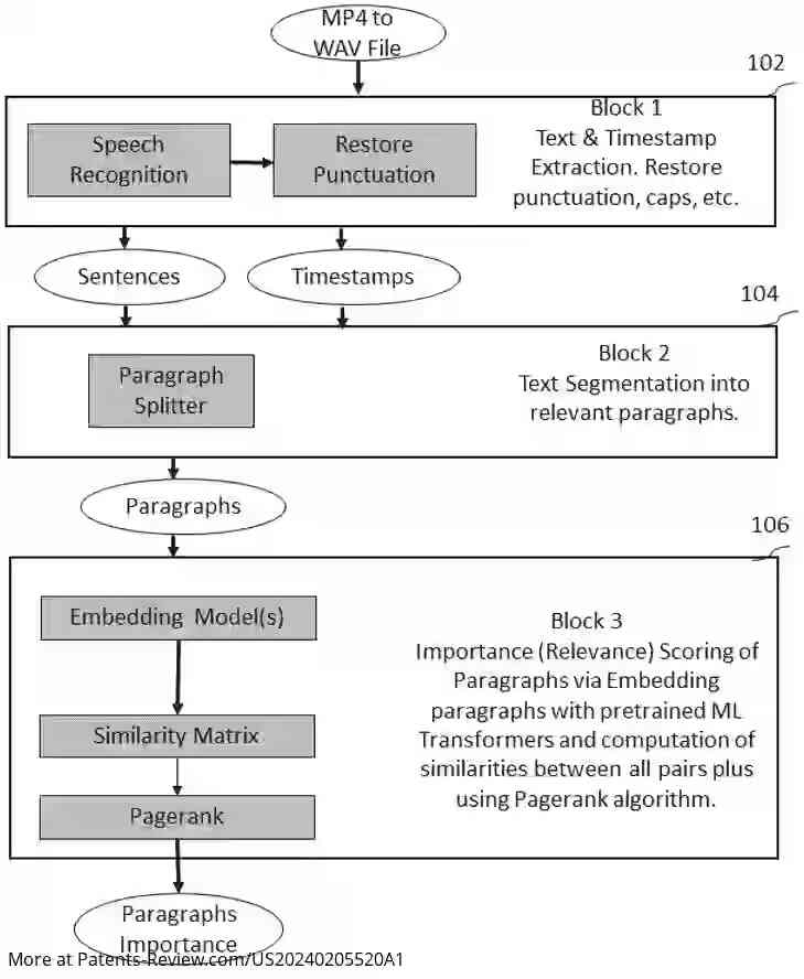 A method for summarising long videos featuring spoken content is presented, leveraging speech recognition to convert video files into transcripts. These transcripts are then segmented into multiple paragraphs using a transformer-based model. Each paragraph is assigned an importance score based on its relevance to the overall content of the transcript, enabling effective ranking and selection of significant information.